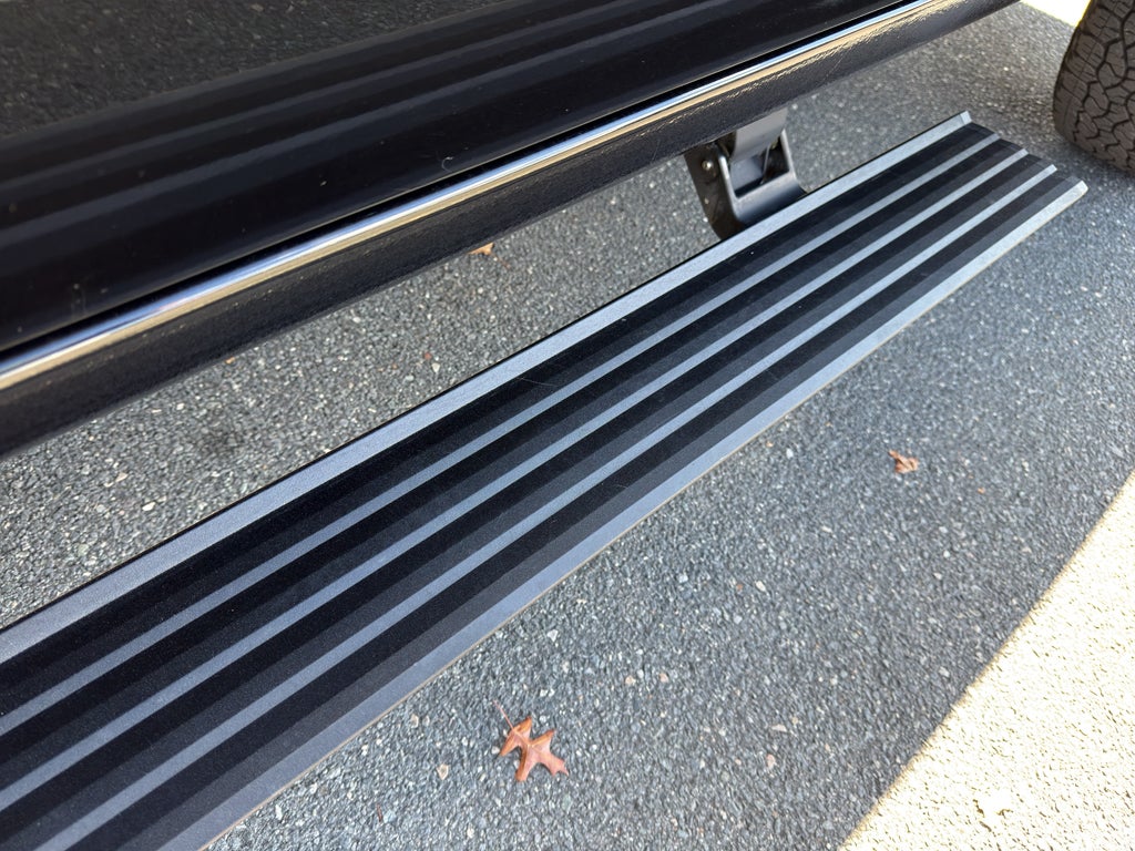 - Outside power-adjustable vertical trailering mirrors with power folding/extending auto-dimming driver and passenger upper glass